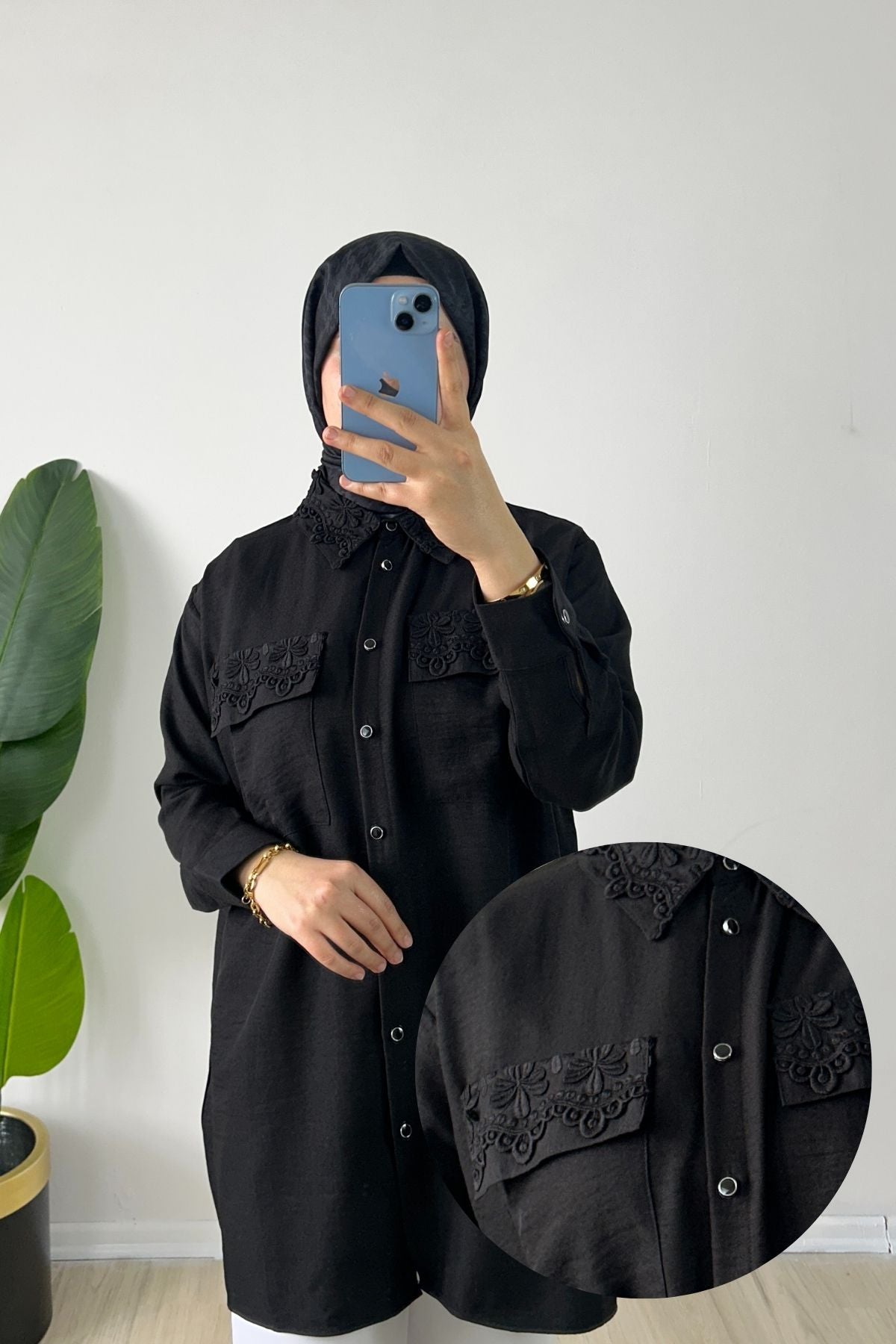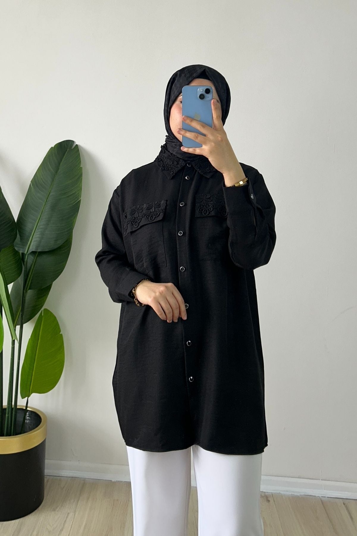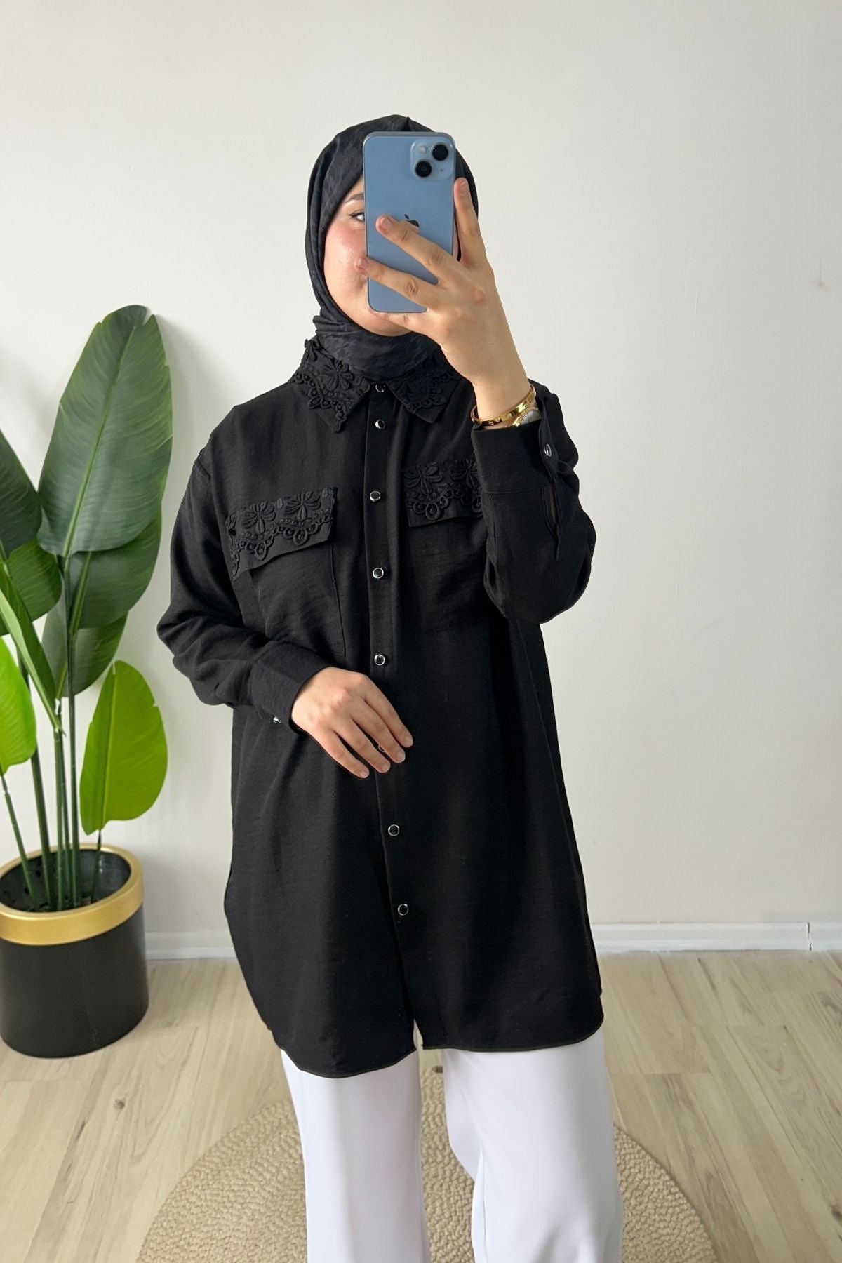 Gülizar Nakış Detaylı Düğmeli Gömlek