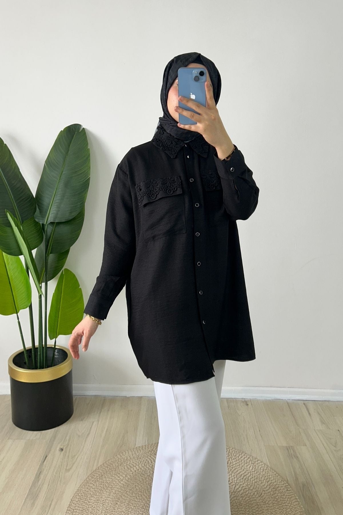 Gülizar Nakış Detaylı Düğmeli Gömlek, sofistike tasarımı ve şık nakış detaylarıyla stilinize zarafet katıyor! Siyah rengin asaletini yansıtan bu özel gömlek, rahat kesimi ve kaliteli kumaşı sayesinde gün boyu konfor sunar. Göğüs kısmında yer alan şık nakış işlemeleri, tasarıma zarif bir dokunuş eklerken, düğmeli yapısı sayesinde kullanım kolaylığı sağlar. Gömleğin hafif dökümlü formu, hem klasik hem de modern kombinlere uyum sağlar.