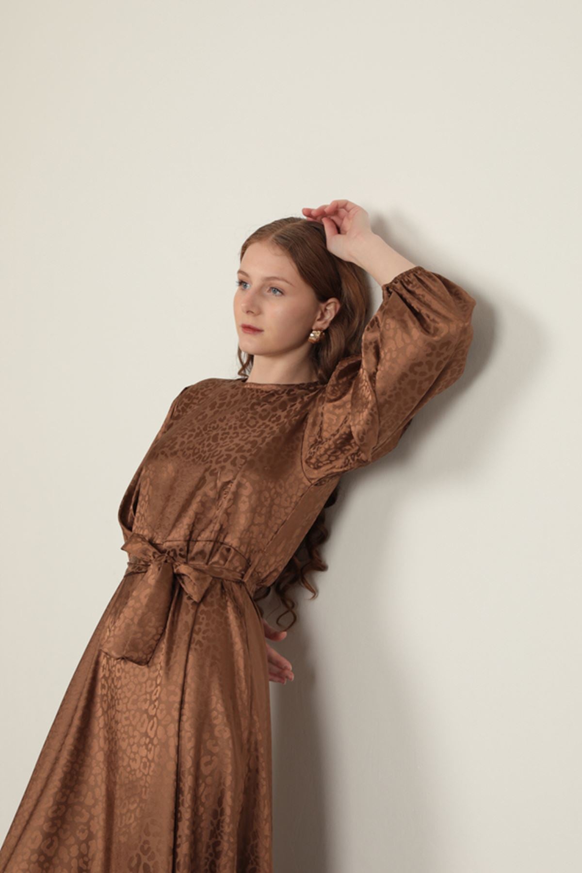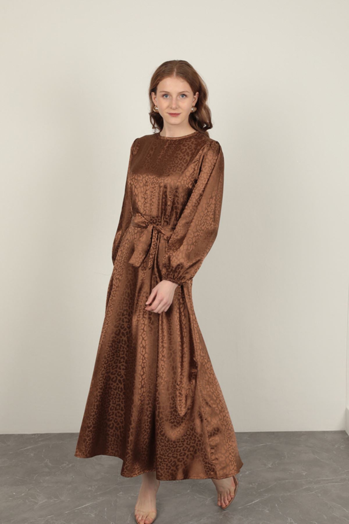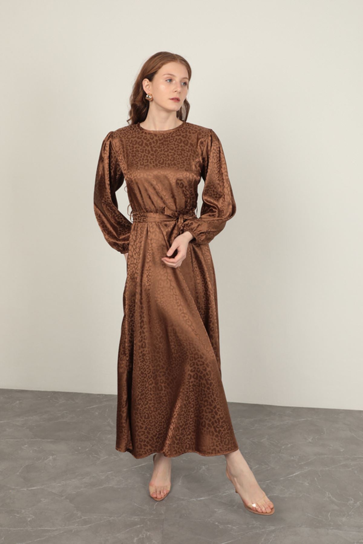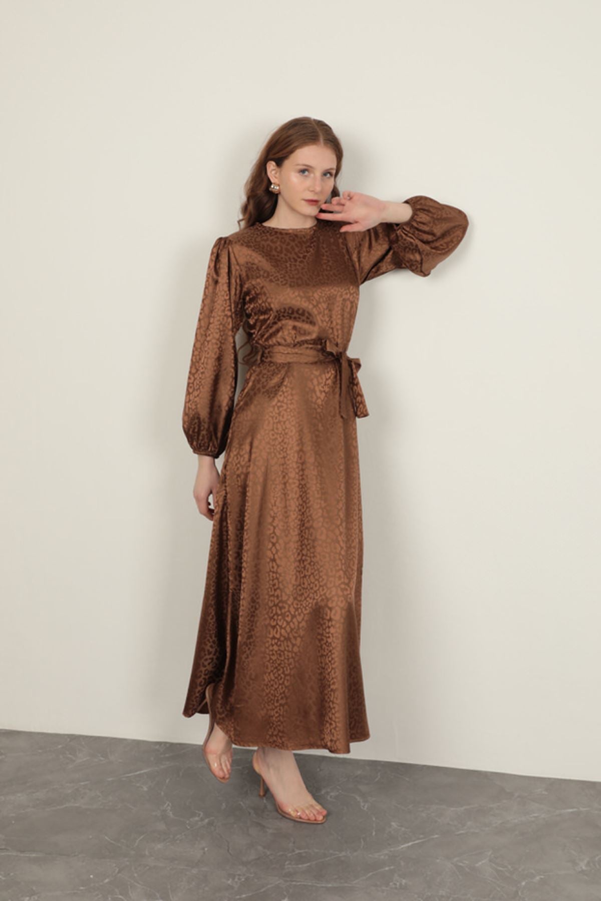Jakar Kumaş Leopar Desen Kadın Elbise-Taba
