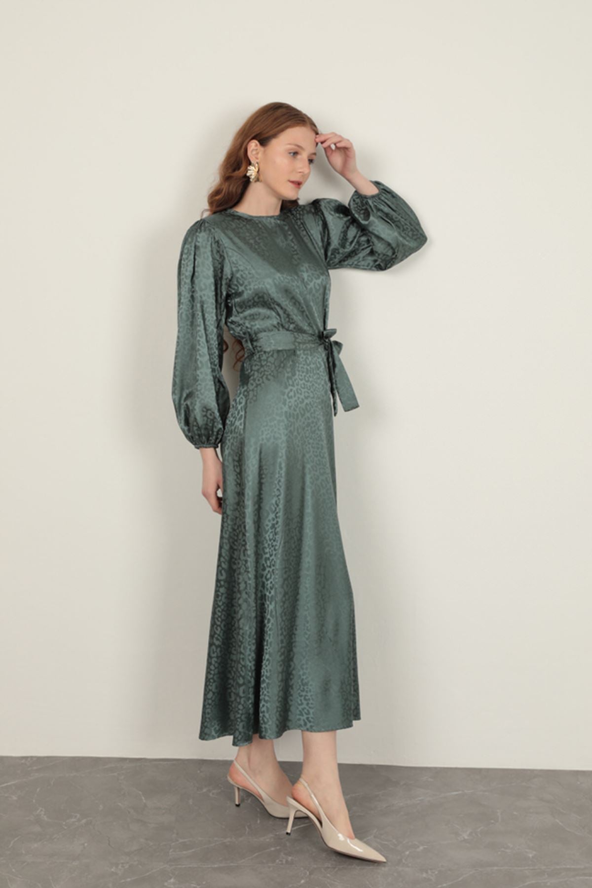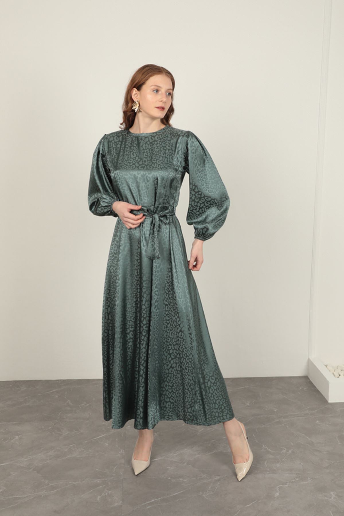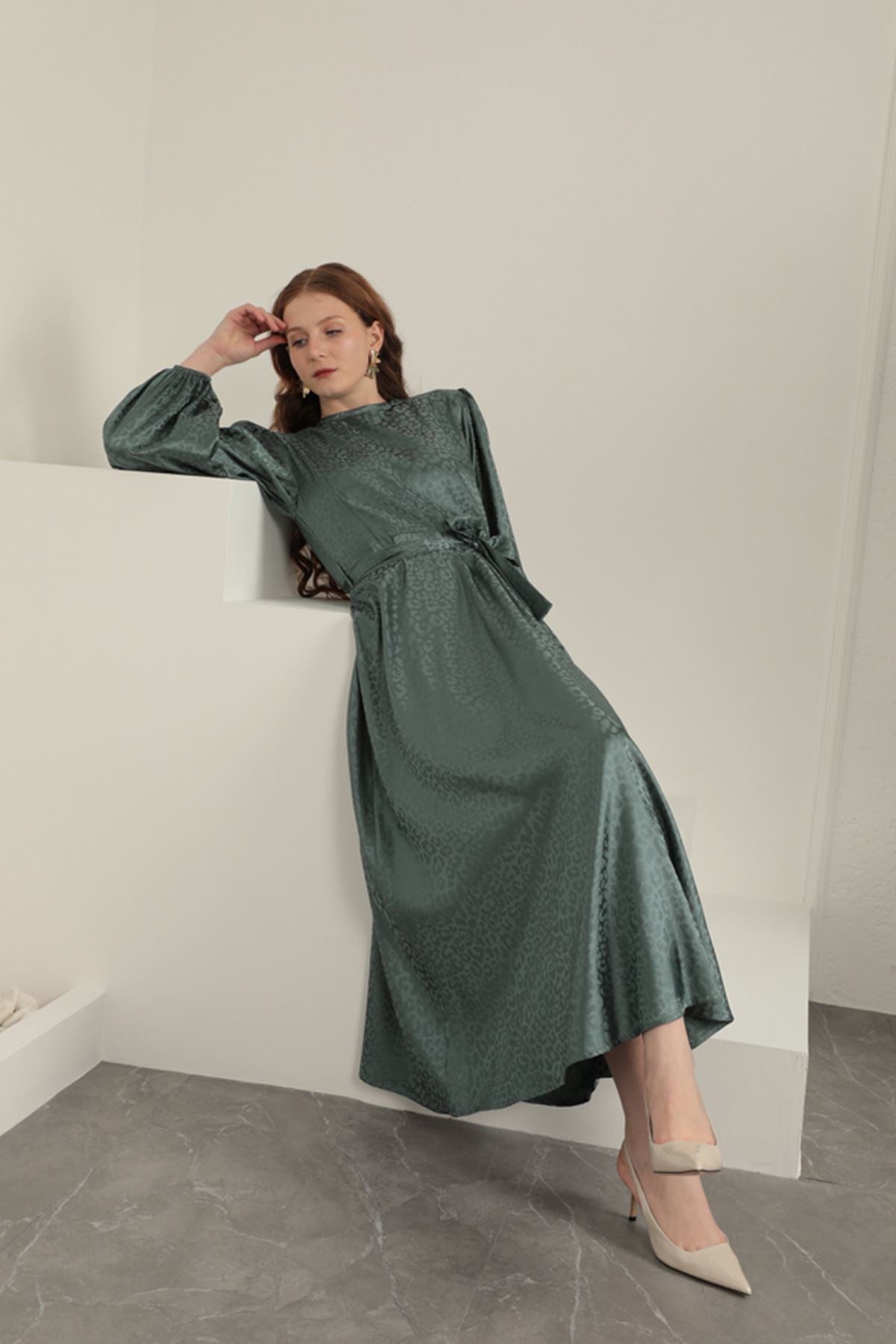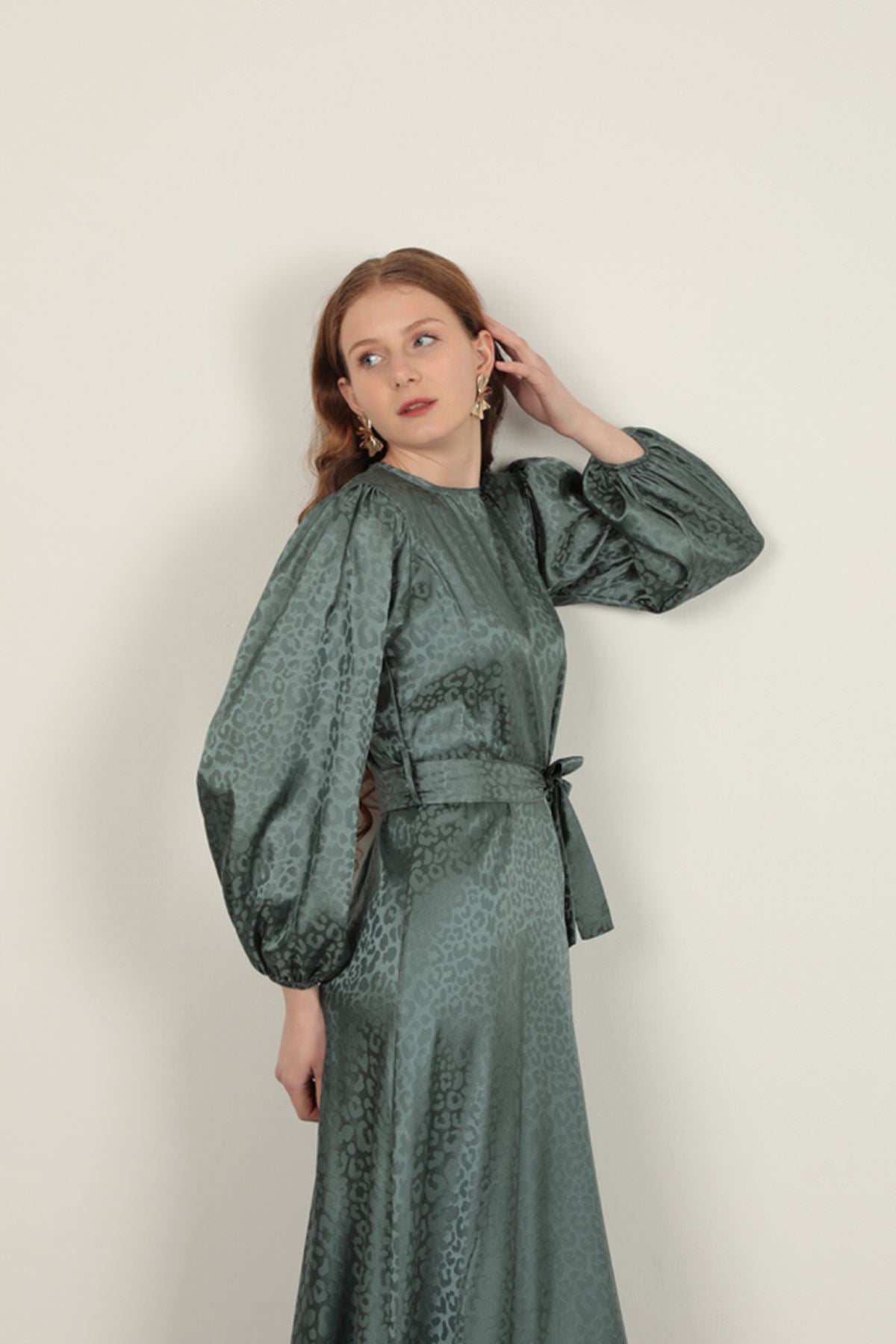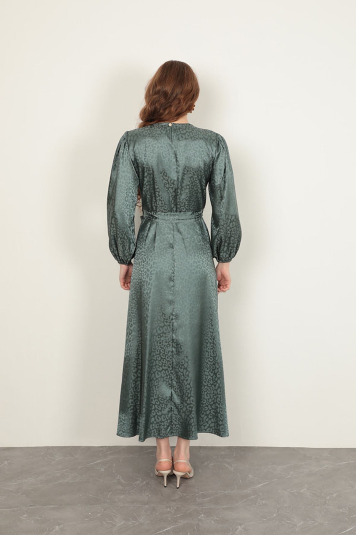 Jakar Kumaş Leopar Desen Kadın Elbise-Yeşil
