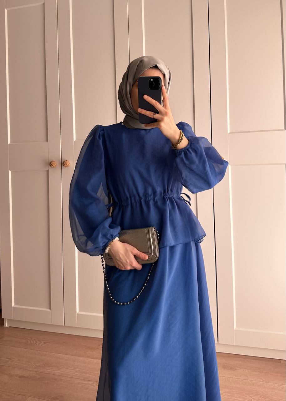 Manolya Organze Kumaş Elbise Lacivert