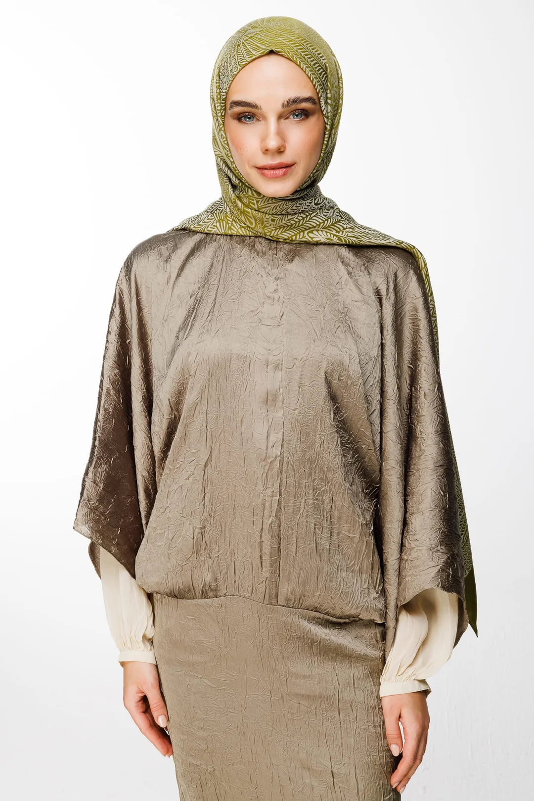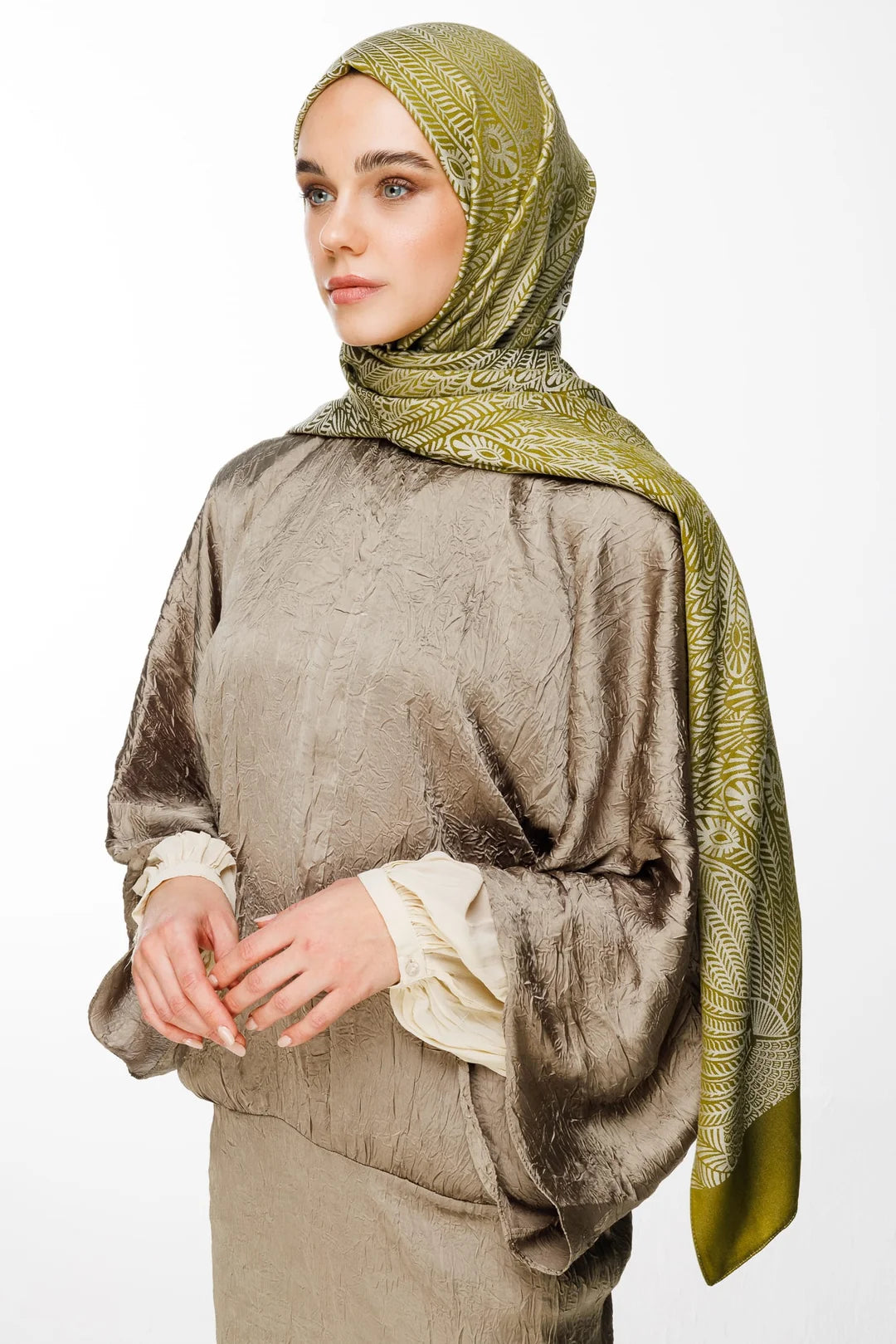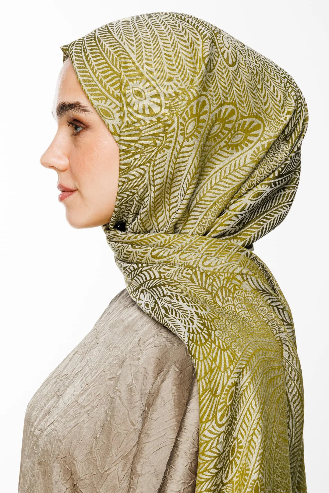 Mayra Desen Çift Taraflı Şal Yağ Yeşili - Ekru