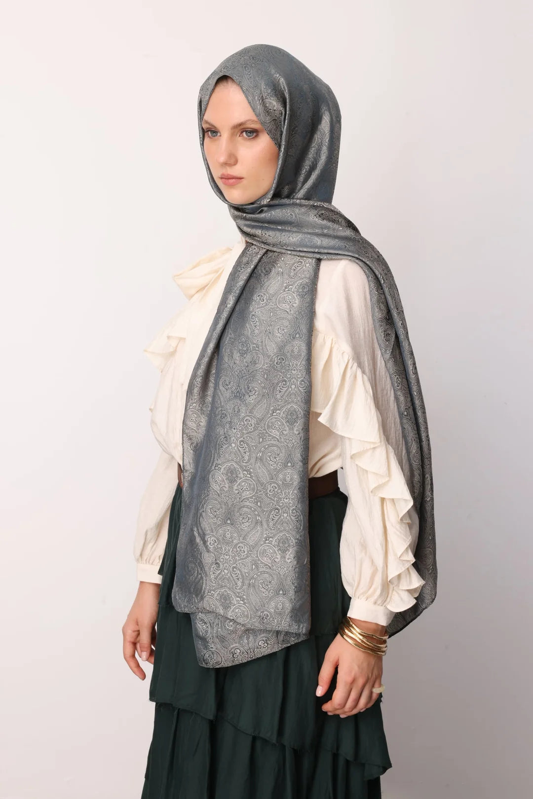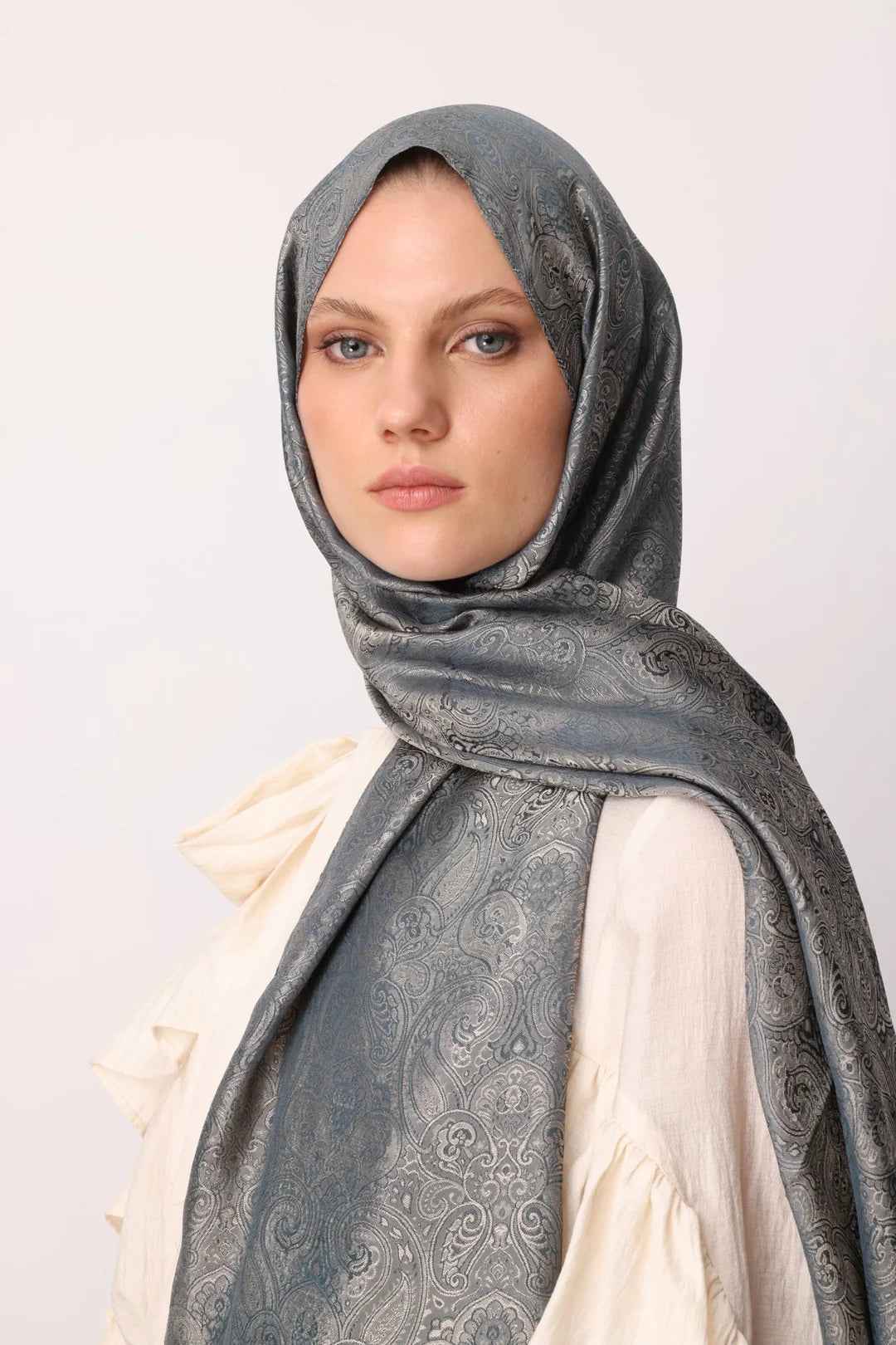 Moren Desen Shine Line Şal Petrol Mavisi - Bej