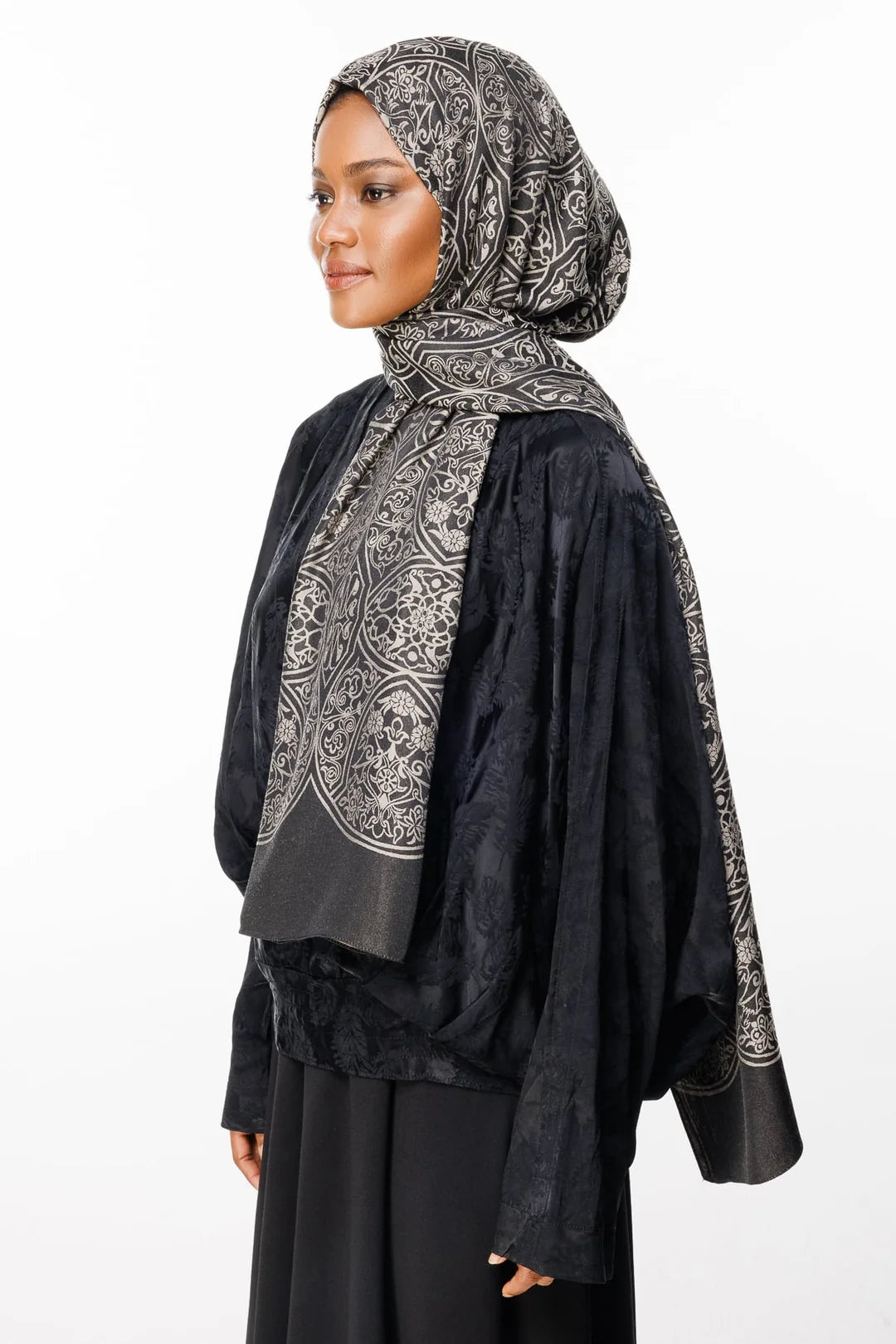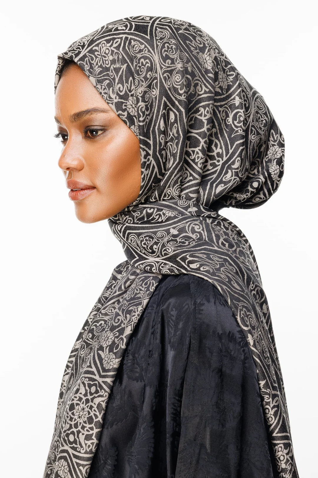 Morocco Desen Çift Taraflı Şal Bej - Siyah