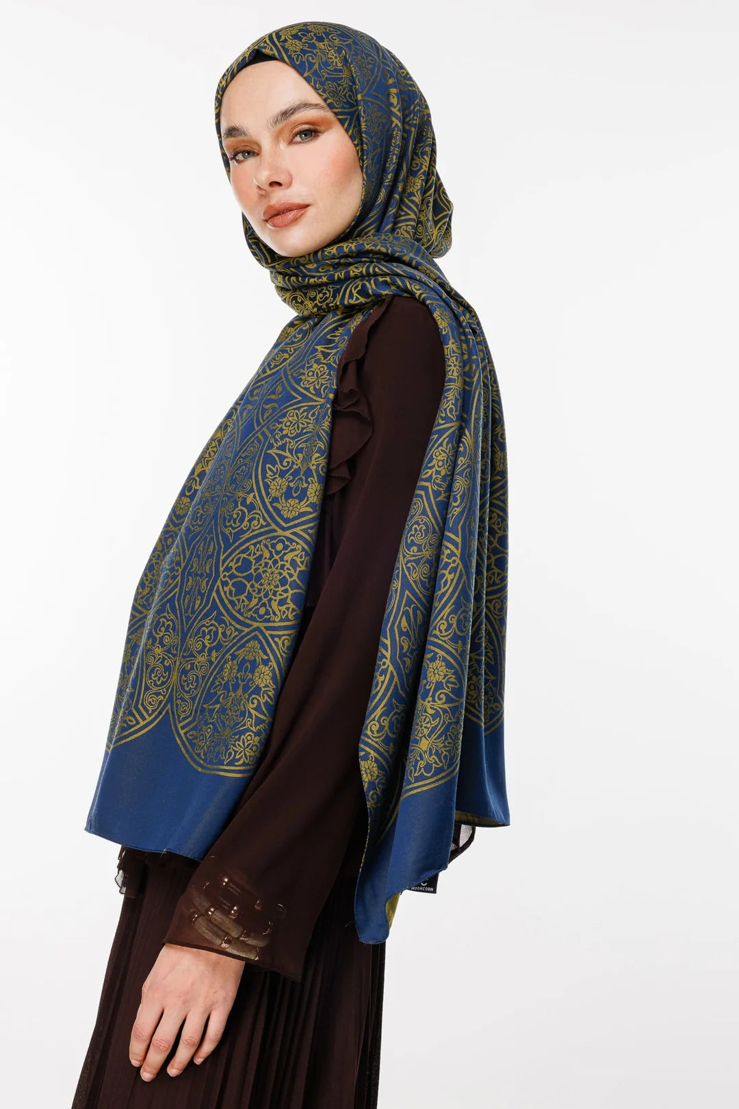 Morocco Desen Çift Taraflı Şal Yağ Yeşili - Lacivert