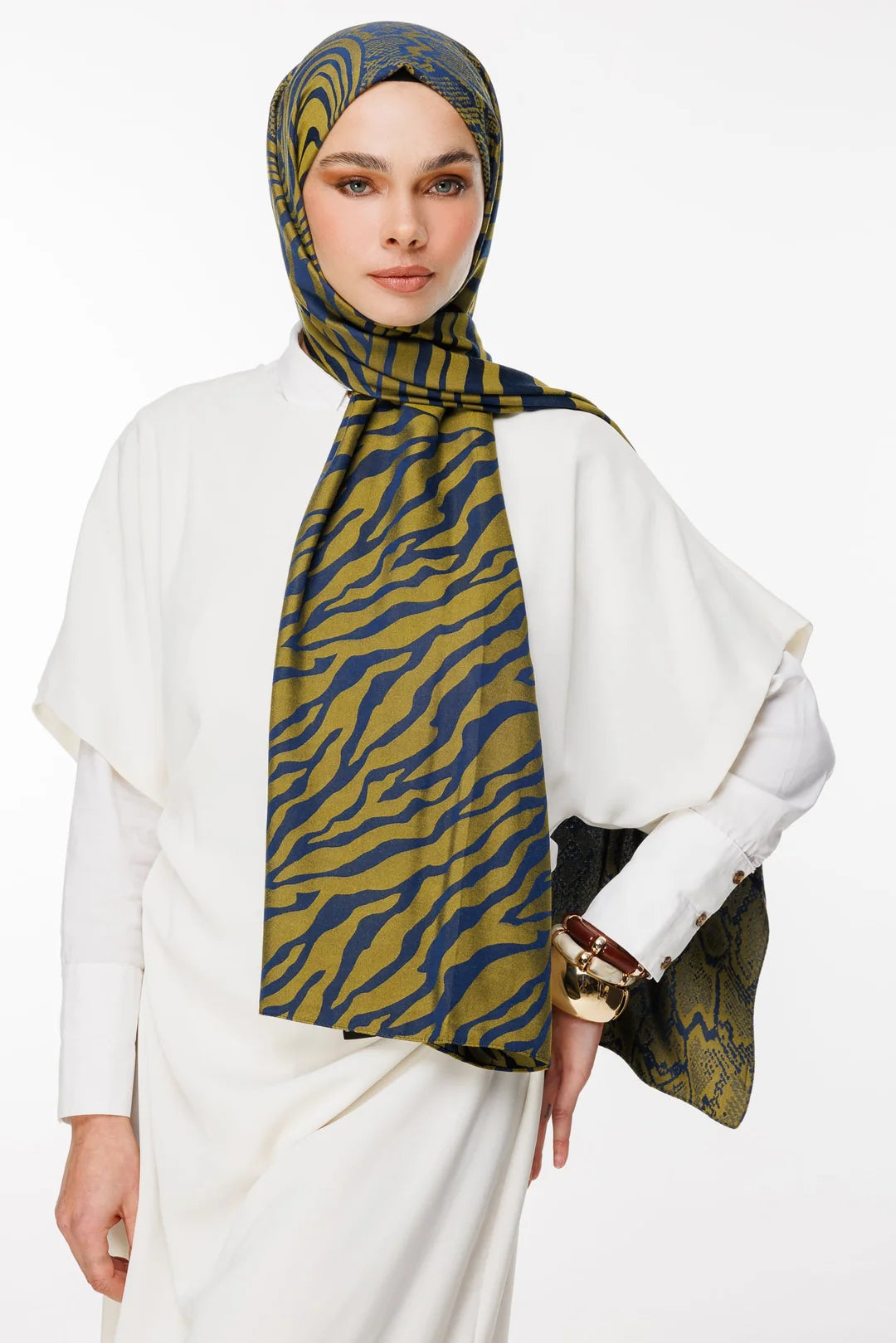 Riad Desen Çift Taraflı Şal Lacivert-Yağ Yeşili