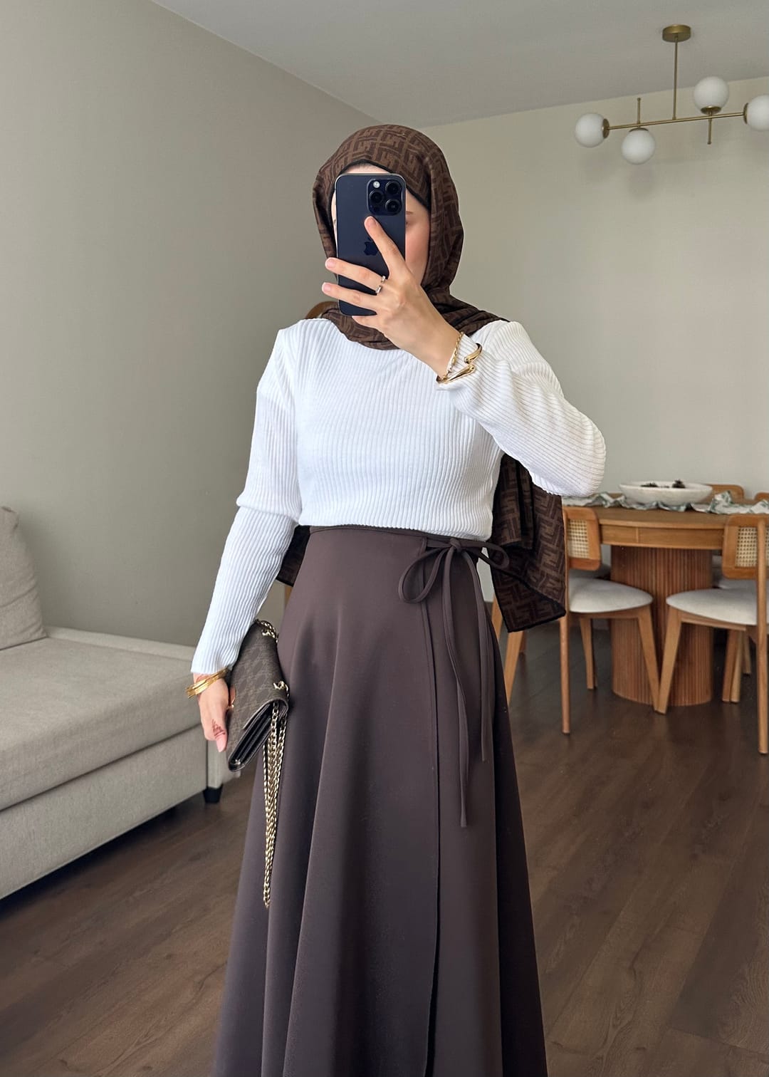 Yandan Bağlamalı Scuba Etek Acı Kahve